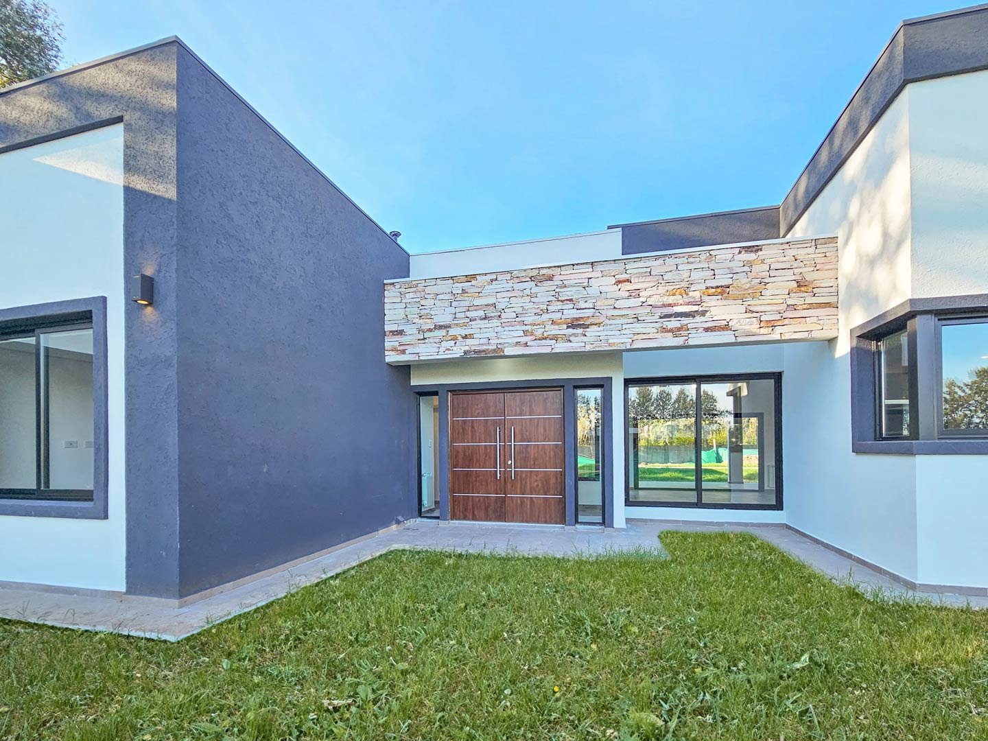 Los volúmenes expresados con diferentes revestimientos se acomodan armónicamente en el terreno, cubriendo el máximo de su aprovechamiento permitido.