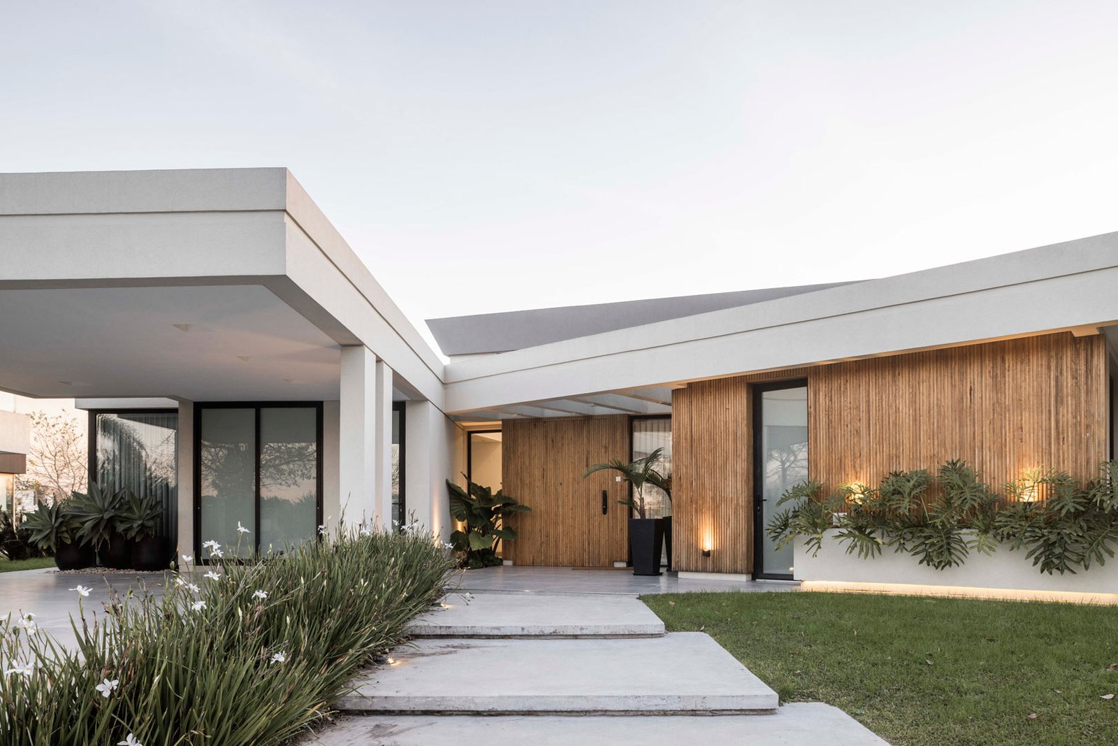 La implantación de la casa es el punto de partida del diseño. Tomando los ejes del terreno, que se abren hacia la laguna, se genera una relación constante entre esta y su entorno.