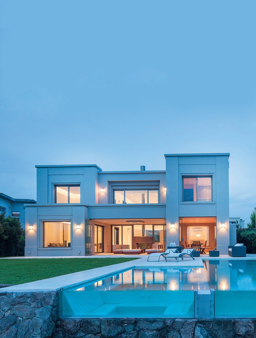 La casa crece en funcionalidad hacia atrás, donde, a través de la amplia galería quincho, se abre hacia el parque que comunica con la casa lindera de los hijos.