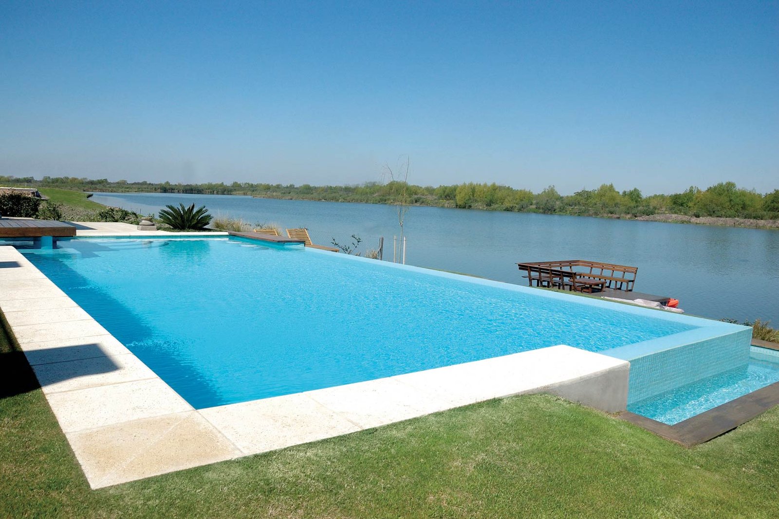 La piscina conforma, con los espacios semicubiertos, el jardín y la vivienda, un proyecto único y uniforme. las líneas rectas y la elegancia de las formas y colorea se repiten, tanto en la piscina como en la vivienda. Original, sin salir de lo clásico, pero con una longitud no tradicional, donde el juego de las … Leer más